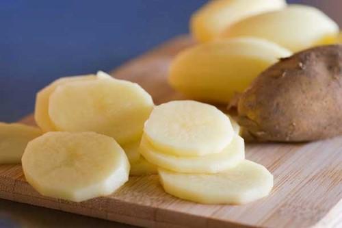 Mụn đầu đen vốn dĩ là loại rất "lì lợm". Bạn chuẩn bị một vài lát khoai tây thái thật mỏng rồi đắp lên các vùng da có mụn. Khoai tây sẽ hút bụi bẩn, bã nhờn để làm sạch da vùng mụn, ngăn chặn mụn đầu đen. Bạn nên sử dụng cách làm này 2-3 lần một tuần để có hiệu quả cao.
