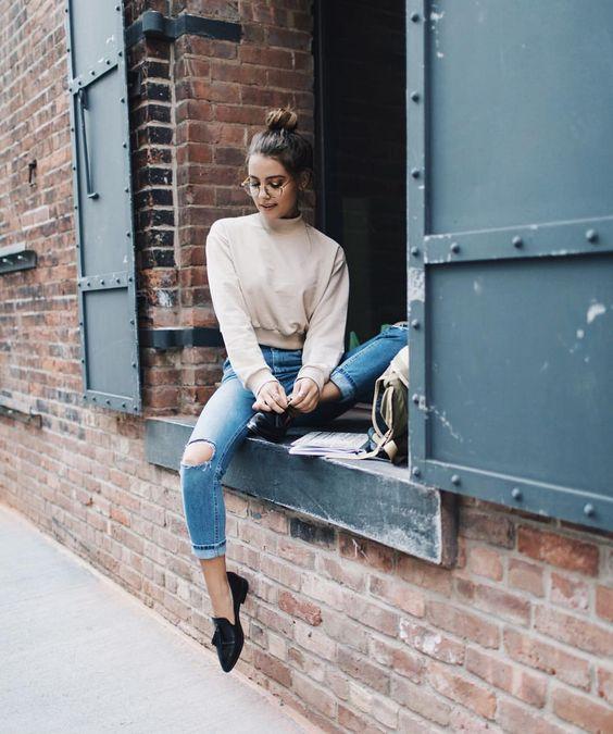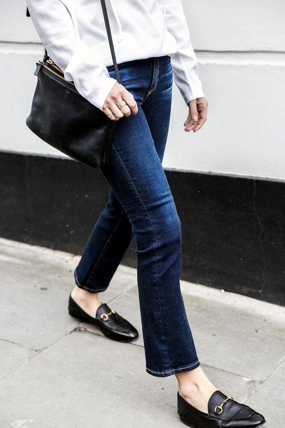 Những quý cô đang theo đuổi phong cách cổ điển hay tomboy chắc chắn không thể bỏ qua giày loafer (giày lười), mẫu giày được làm bằng da, màu nâu hoặc đen với thiết kế tiện lợi, không dây buộc hay khóa cài. Chỉ cần diện một chiếc áo thun đơn giản, quần âu ống lỡ đi cùng giày loafer là đã bạn có ngay set đồ đơn giản nhưng đầy thanh lịch.