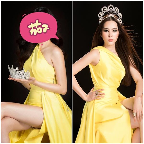 Và cũng thật trùng hợp, chiếc váy gam vàng mà mỹ nhân giấu mặt diện giống hệt với chiếc váy mà Nam Em sử dụng trong bộ ảnh "Miss Thất tình" được tung ra trước đó. Vì vậy, nghi án chân dài Tiền Giang dự thi Miss Tourism Queen International 2018 được cho là càng có thêm cơ sở khẳng định.