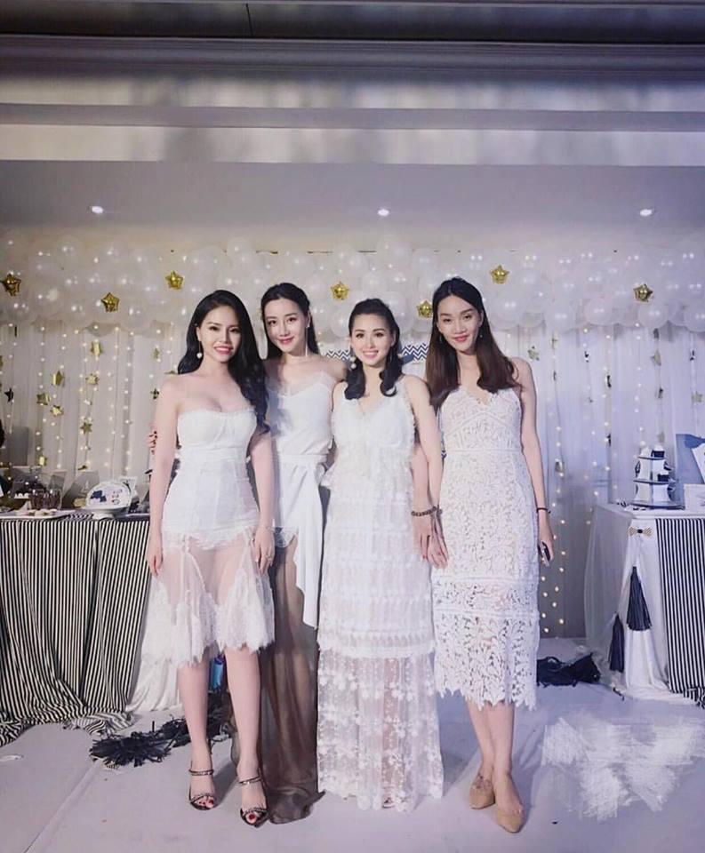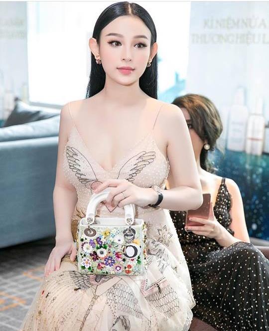 Tại sự kiện khai trương, Huyền Baby diện đầm ren hàng hiệu khoe vòng 1 gợi cảm và nước da nõn nà.