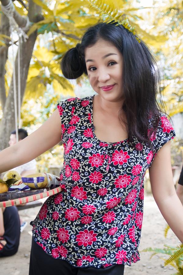 “Có cảnh tôi phải đu lên cửa sổ để đòi cưới anh Tấn Beo, không may bị té xuống làm dập một góc vườn rau và bể chậu kiểng của người dân vậy mà họ không những không giận, còn thông cảm và phụ tôi dọn để quay tiếp, nghệ sĩ đi quay gặp nhiều người dân dễ thương lắm.
