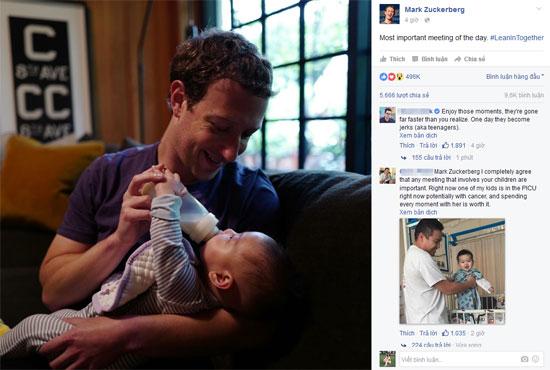 Thỉnh thoảng khoảnh khắc đáng yêu của cô công chúa nhỏ hay hình ảnh thay quần áo cho con, đưa con đi bơi, cùng con đọc sách... được Mark chia sẻ nhận được hàng triệu lượt like và hàng chục nghìn chia sẻ của dân mạng.