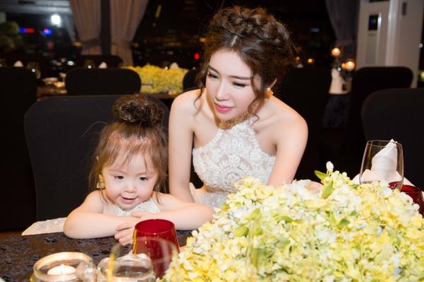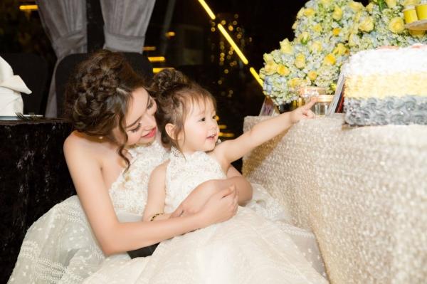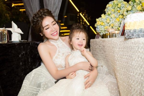 Tối 10/6, Elly Trần và con gái Cadie xuất hiện rạng rỡ tại buổi tiệc sinh nhật của thiên thần nhí. Cả hai diện trang phục đôi do NTK Phạm Đăng Anh Thư thực hiện. Elly Trần diện váy