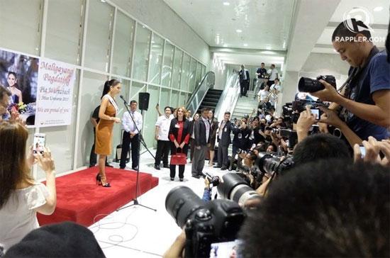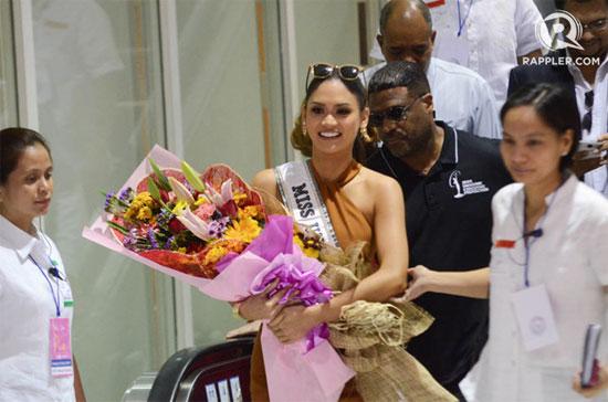 Sáng nay, Tân Hoa hậu Hoàn vũ - Pia Wurtzbach đã trở về quê nhà Philippines.