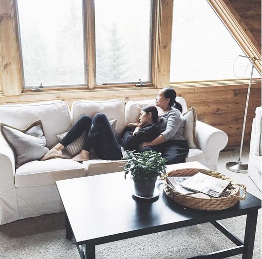 Khoảnh khắc bình yên trong lòng mẹ của Hà Tăng tại xứ người.