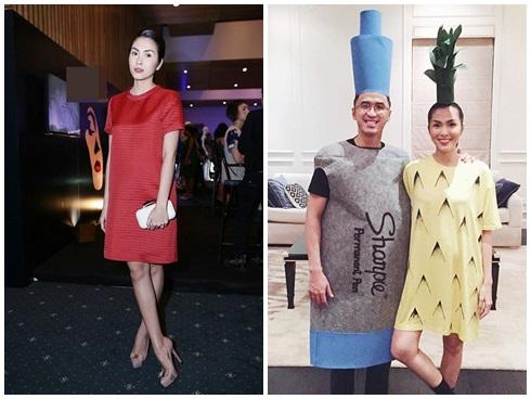 Tăng Thanh Hà với set đồ cùng một màu nude đồng nhất tạo nên phong cách thanh lịch và phom người thanh thoát