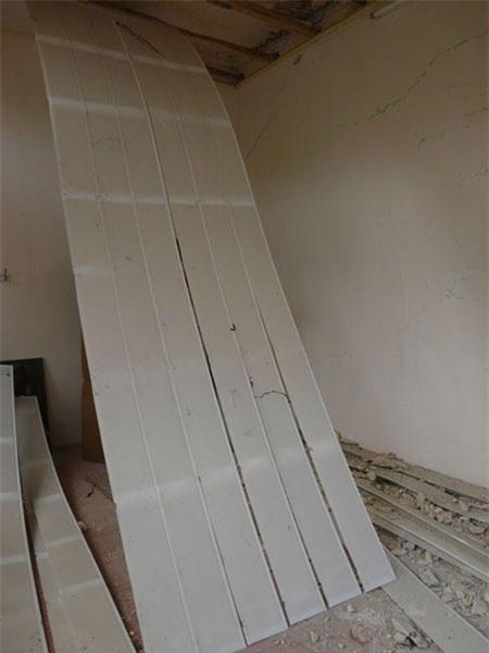 Trần tầng 2 của một nhà dân cách khu vực nổ gần 1km bị vỡ, tung vữa, nhựa rơi xuống.