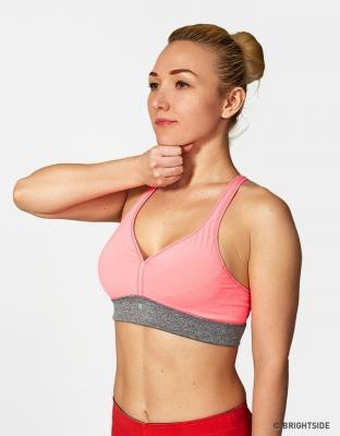 Nắm chặt tay thành nắm đấm rồi đặt tay dưới cằm trong 5 giây, sau đó nghỉ thư giãn trong 5 giây rồi lặp lại động tác 2-3 lần.