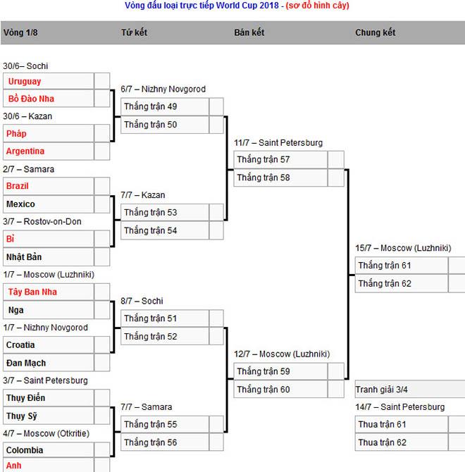 Sơ đồ vòng đấu loại trực tiếp "World Cup 2018".