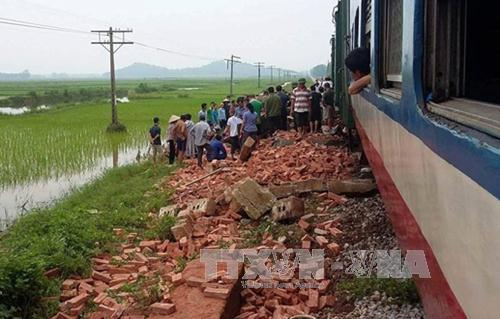 Người dân chứng kiến cho biết: Thời điểm đó đoàn tàu đã kéo còi từ xa, tuy nhiên lái xe tải chở gạch không kiên nhẫn đợi tàu qua mà cố vượt, dẫn tới hậu quả thương tâm.