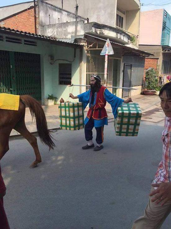 Không giống trong phim, Sa Tăng "phiên bản Việt" lại gánh hai thùng xốp hai bên thay vì nặng trĩu đồ đạc theo nguyên tác. Nhiều độc giả không quên bình luận: "Tăng đi ship đá mùa hè à", "Xách thùng rác đi đổ"...