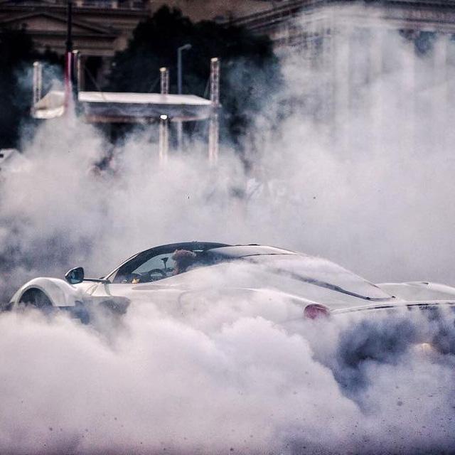 Chiếc Ferrari LaFerrari Aperta "đốt lốp" tạo ra khói mù mịt.