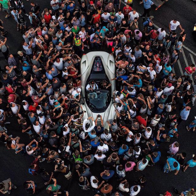 Hàng trăm người vây quanh chiếc Ferrari LaFerrari Aperta của Josh để chụp ảnh.