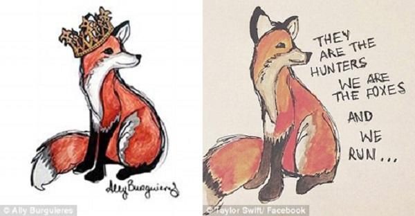 Mới đây, một cô gái có tên Ally Burguieres ở New Orleans đã viết một lá thư công khai gửi đến Taylor, khẳng định nữ ca sĩ đã sử dụng trái phép hình ảnh một chú cáo do chính cô này vẽ để quảng bá cho album 1989 vào tháng 10 vừa qua. Người đại diện của Taylor khẳng định cô chỉ chia sẻ lại hình ảnh nói trên chứ không có ý định dùng nó để quảng bá, và đề nghị chi một khoảng tiền được cho là lớn hơn phí bảng quyền, nhưng Ally vẫn quyết định nộp đơn kiện.