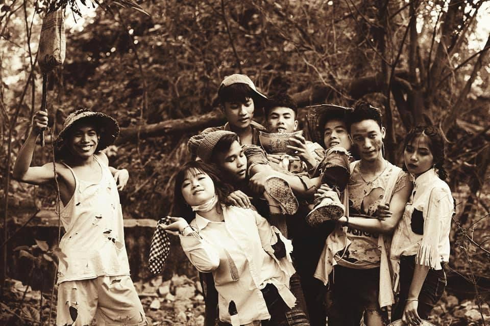 Bối cảnh chính trong các bức ảnh là vườn nhãn, bãi rác, khu nhà hoang. "Ban đầu, các bạn trong lớp đều khá ngại, sợ rắn rết với mùi hôi nhưng tất cả đều cố gắng cho bộ ảnh đáng nhớ thời học sinh", Minh kể với Zing.vn.