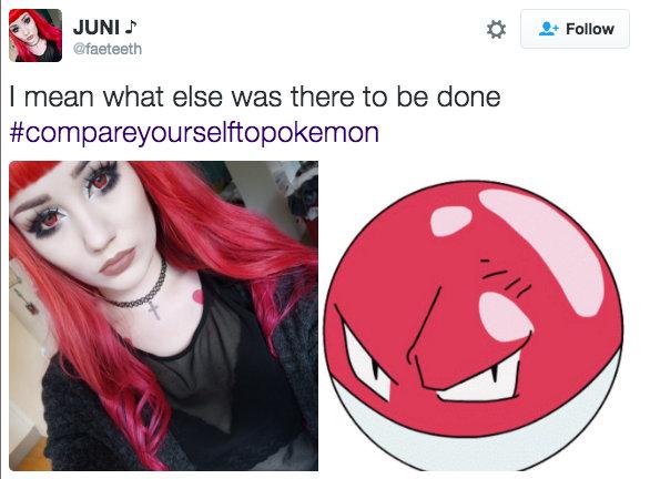 Với dòng hashtag: #compareyourselftopokemon, fan hâm mộ chia sẻ những bức ảnh so sánh sự giống nhau kỳ lạ của bản thân sau khi hóa trang với những nhân vật Pokemon họ ưa thích.
