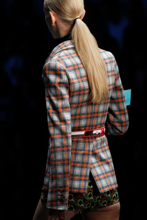Kiểu tóc đuôi ngựa xuất hiện trên sàn diễn của thương hiệu Tibi Xuân Hè 2017.