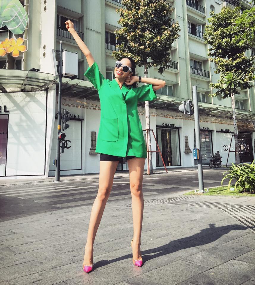 Mới đây, Phạm Hương bất ngờ đăng tải khoảnh khắc xinh đẹp trong bộ trang phục màu tím đón nắng Sài Gòn cùng dòng caption: "Đón ngày nắng cuối cùng ở Sài Gòn thôi....".