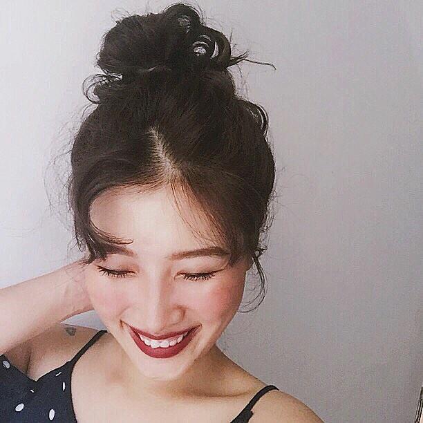 Đây là cách tạo kiểu đảm-bảo-xinh cho cả tóc ngắn lẫn tóc dài. Tóc uốn xoăn kết hợp búi hoặc buộc nửa không chỉ yểu điệu mà còn cực kỳ hợp để diện cùng váy áo "bánh bèo" ngày Tết.