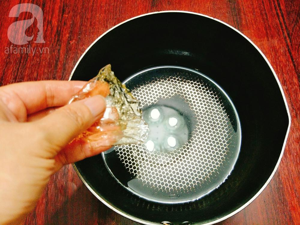 Bước 5: 2 lá gelatin còn lại bạn đem ngâm nước đá lạnh 5-10 phút cho mềm sau đó vớt ra cho vào bát sứ, để vào lò vi sóng quay 30 giây cho gelatin tan chảy thành nước thì lấy ra, hoặc bạn không có lò vi sóng có thể đem đun cách thủy cho gelatin tan chảy là được.