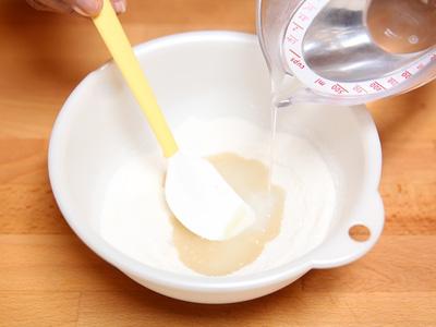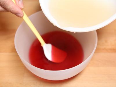 Đổ hỗn hợp nước rau câu vào trong tô đựng nước bụp giấm khuấy đều. Sau đó
