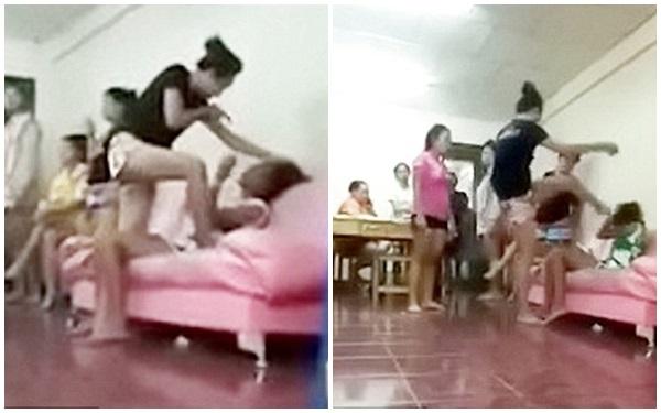 Vụ đánh ghen đang gây thu hút cộng đồng mạng này xảy ra ngay tại nhà của cặp vợ chồng ở Bangkok, Thái Lan. Theo clip có thể thấy, người vợ hung giữ tung ra hàng loạt cú đá vào đầu bồ nhí khoảng 9 lần, rồi tát và kéo tóc cô này trong cuộc tấn công kéo dài khoảng 2 phút.