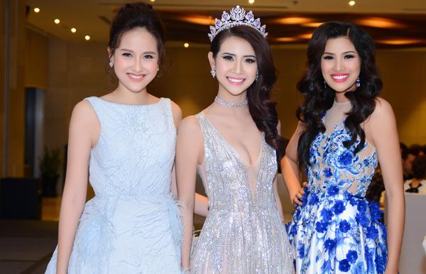 Phạm Hương rạng rỡ diện áo dài và đội vương miện khi xuất hiện tại buổi tọa đàm "Người kế vị tương lai" của Hoa hậu Hoàn vũ Việt Nam 2017 vào chiều 19/4 tại Hà Nội.