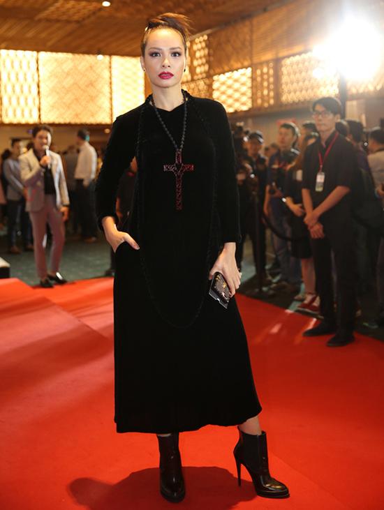 Bộ cánh đen xì cùng chuỗi tràng hạt khổng lồ của cựu người mẫu Thúy Hạnh gợi nhắc hình ảnh "nữ tu". Cộng thêm kiểu trang điểm đậm, mái tóc cột cao lên đỉnh đầu khiến Thúy Hạnh trở thành một "nữ tu" đích thực.