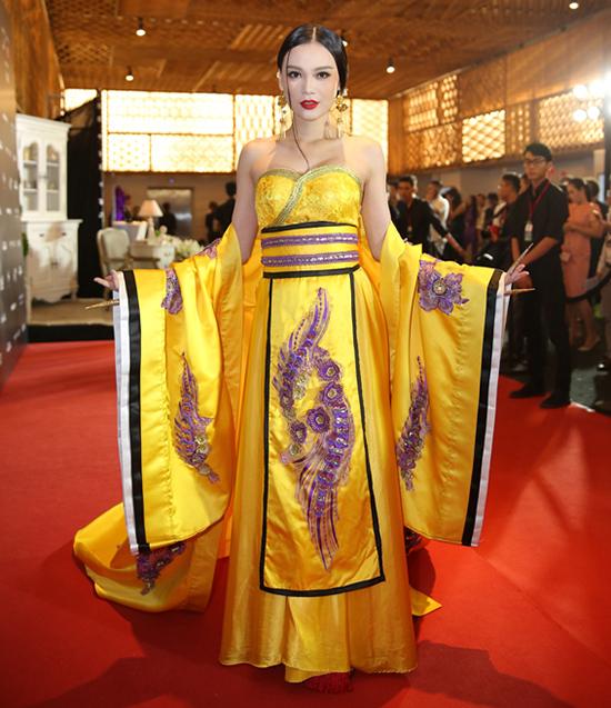 Huỳnh Tiên xuất hiện tại VIFW 2017 ấn tượng với bộ cánh có vẻ như lấy cảm hứng từ diễn viên xiếc. Mẫu thiết kế lạ mắt khiến người đẹp mất điểm khi để lộ thân hình mập mạp.