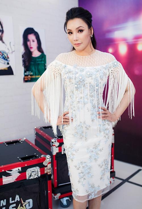 Hồ Quỳnh Hương rườm rà trong chiếc đầm váy dáng bút chì với phần tua rua thiếu tinh tế.