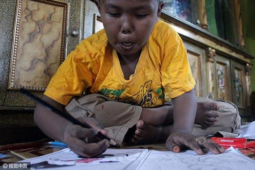 Cậu bé rất chăm học và đang cố gắng học tập thật tốt cho tương lai.