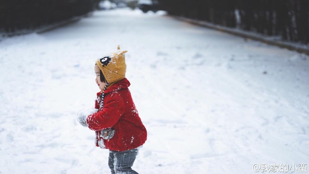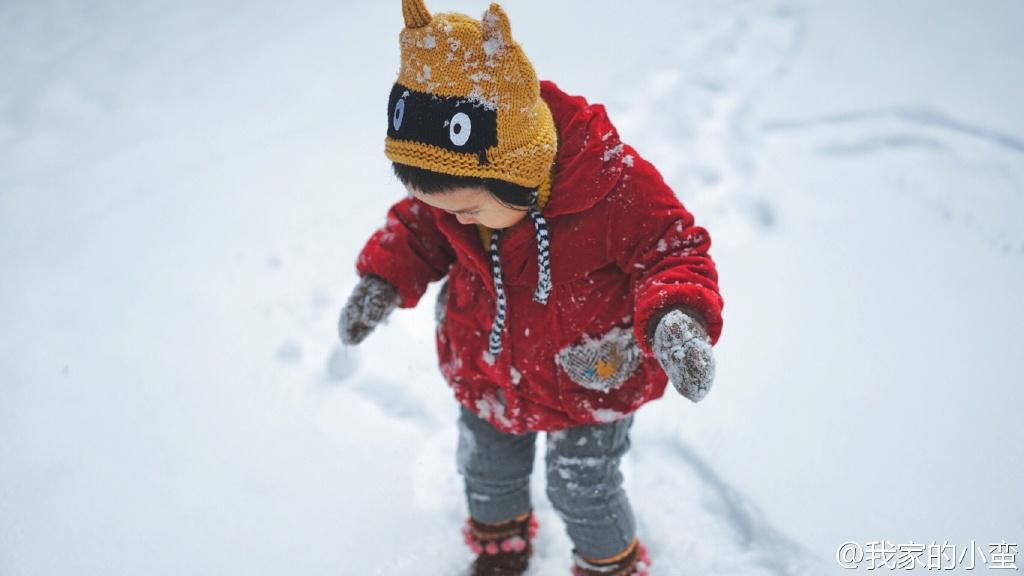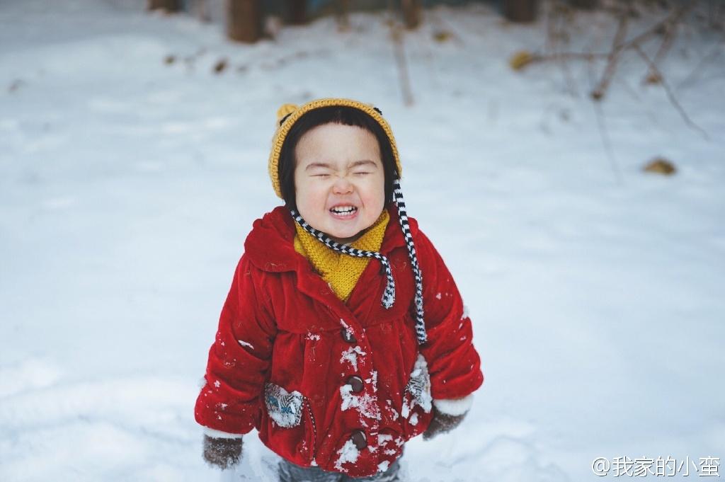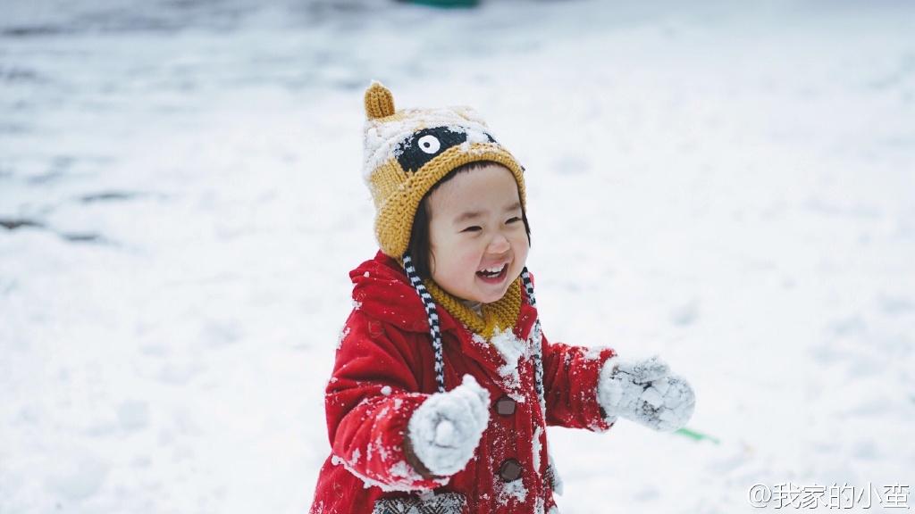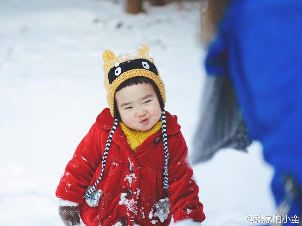 Nụ cười rạng rỡ của Tiểu Man khi nghịch tuyết