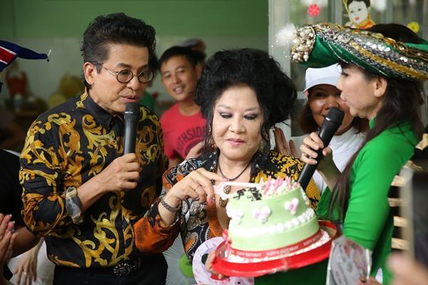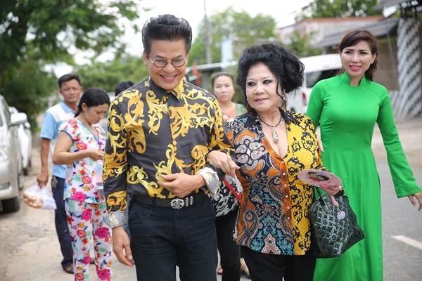 Cặp đôi mặc ton-sur-ton áo họa tiết vàng và quần đen, tay trong tay tình tứ, trông vô cùng vui vẻ và hạnh phúc. Số tiền thu được từ đám cưới diễn ra hôm qua được MC Thanh Bạch và bà Thúy Nga sử dụng toàn bộ cho chuyến đi từ thiện này.
