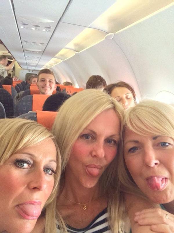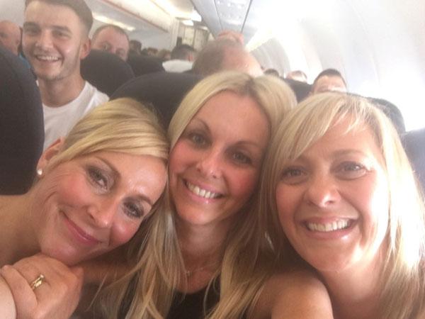 Sharon (giữa) với Samantha Shield và Elaine Dixon trên chuyến bay đến Tây Ban Nha năm nay.