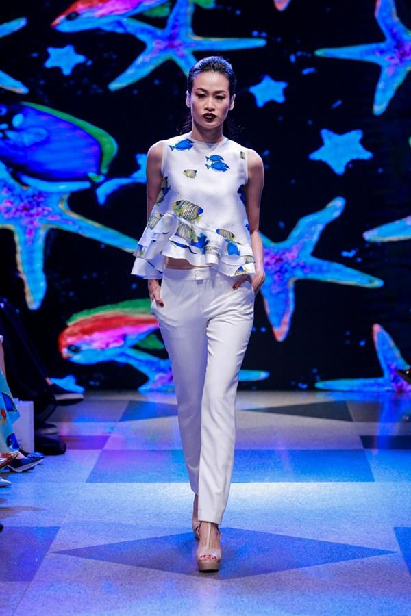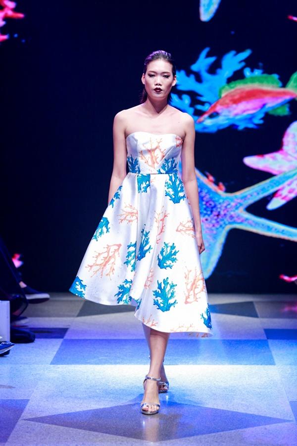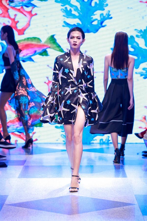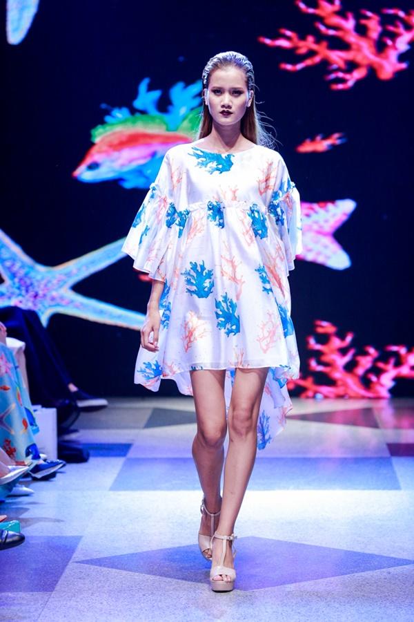 Á hậu Lệ Hằng mở màn phần đầu của bộ sưu tập với 30 thiết kế lấy cảm hứng từ đại dương. Những hoạ tiết in kỹ thuật số sinh vật biển lạ mắt mang đến cho khán giả không gian đại dương đầy màu sắc. Hoạ tiết in được nhà thiết kế chọn làm signature cho phong cách thiết kế của mình, không bao giờ vắng mặt trong các bộ sưu tập.