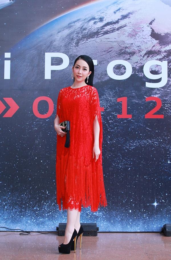Tham dự đêm tiệc này, Linh Nga xuất hiện nổi bật, rạng rỡ trong bộ váy màu đỏ rực trên nền chất liệu ren mềm mại. Thiết kế này là sự kết hợp giữa váy ôm sát bên trong cùng áo choàng xẻ tay bên ngoài. Bộ trang phục càng trở nên bắt mắt hơn với chi tiết tua rua mềm mại, hợp xu hướng đối xứng ở hai bên tay áo.