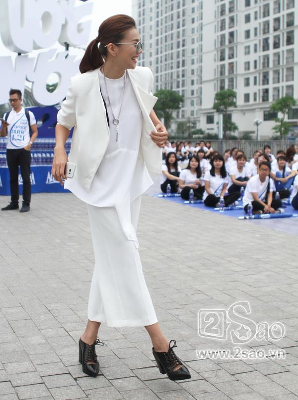 Xuất hiện từ sáng sớm, diện bộ trang phục trắng sành điệu, Thanh Hằng nhận