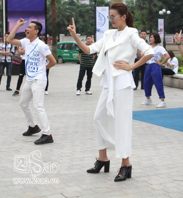 Diện cây trắng với quần ống rộng, áo bất đối xứng đang là xu hướng - giày block heels đế thô với dây đan bắt mắt, Thanh Hằng không quên phụ kiện vòng cổ dài kim loại bổ sung vào set đồ thêm ấn tượng, đặc biệt kính mắt trong suốt thời thượng là lựa chọn quá hoàn hảo để Thanh Hằng thêm phần toả sáng trước đám đông. Cô đã cùng với 421 học sinh nhảy flashmob trên nền nhạc sôi động. Noo Phước Thịnh cũng có mặt tại sự kiện, ngay khi gặp nhau Thanh Hằng và Noo Phước Thịnh thân thiết, cả hai cực nhí nhảnh trẻ trung “selfie” cùng nhau.
