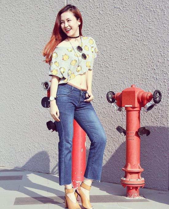 Đinh Hương thu hút mọi ánh nhìn trong "bộ đôi" áo crop top và quần jeans