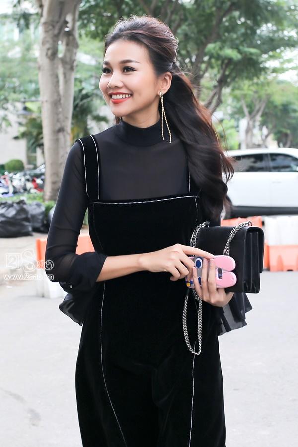 Thanh Hằng diện bộ trang phục đen đơn giản nhưng vẫn sang trong quyến rũ.