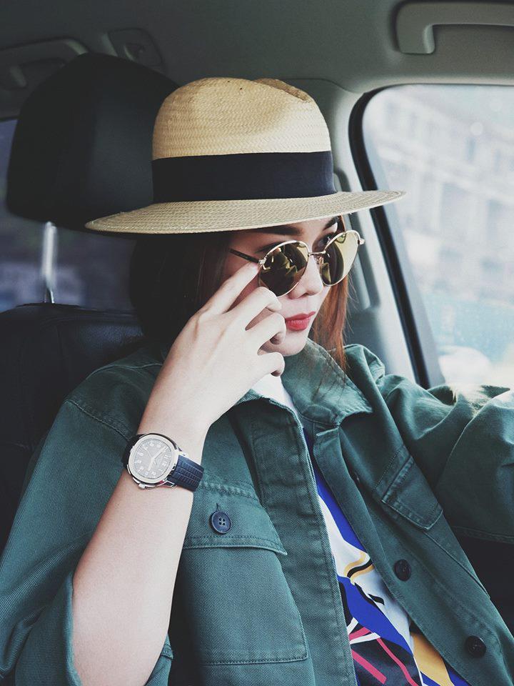 Vẫn là chiếc mũ cói quen thuộc như sau cứ như hai người khác nhau thế này, một thì ngọt ngào nữ tính, còn lại thì mạnh mẽ và phong trần.