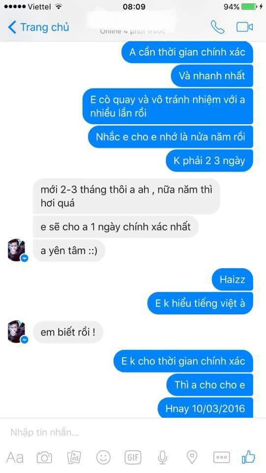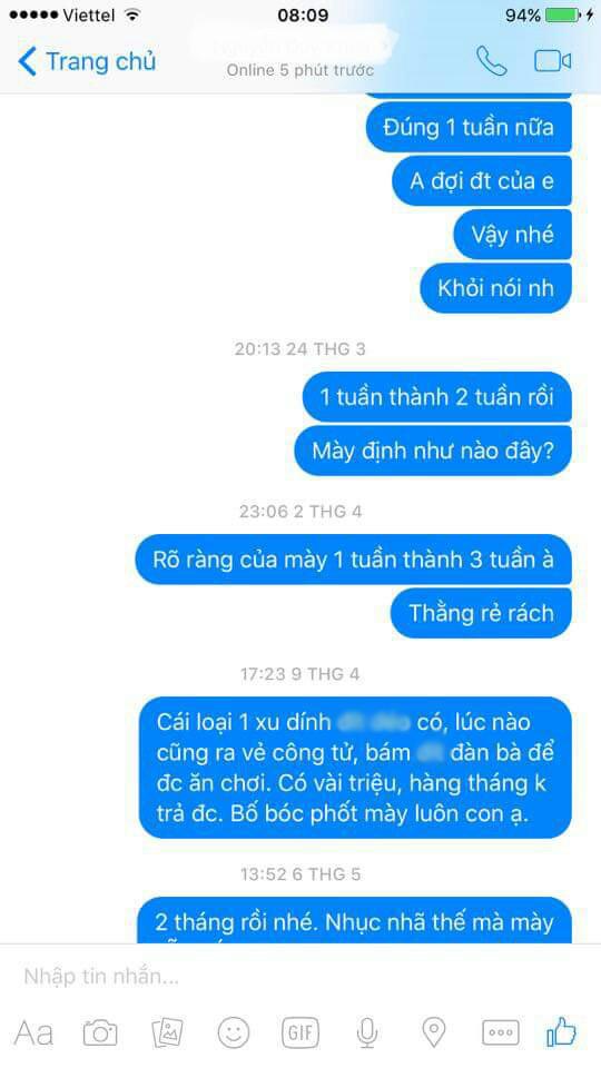 Đoạn tin nhắn được cho là cuộc nói chuyện giữa chủ Facebook Đ.T.P và nhân vật K.D.N.