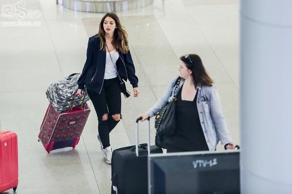 Dù trải qua chuyến bay dài, cô nàng hot girl vẫn tươi cười rạng rỡ, tràn đầy năng lượng.