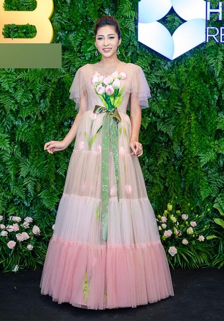 "Đụng hàng" với váy của Kỳ Duyên nhưng Phan Hoàng Thu lại mất điểm toàn tập vì phô diễn thân hình thừa mỡ. Hơn nữa, cách kết hợp cùng giầy cao gót hồng chóe lệch tông làm mất đi vẻ sang chảnh.