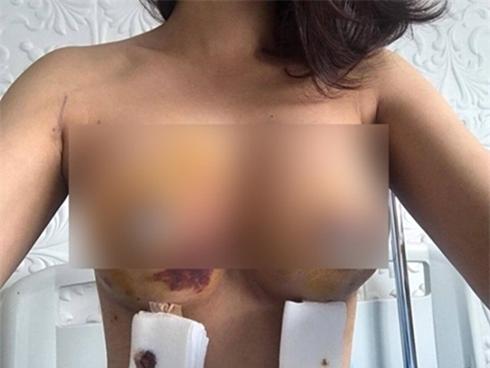 Hình ảnh ngực chị L. bị sưng, đau đớn sau phẫu thuật.