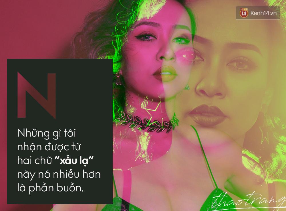 Nếu cô gái nào cũng thích được mọi người gọi mình bằng những danh xưng mỹ miều, ngợi ca nhan sắc thì Thảo Trang lại tự nhận mình xấu-và-lạ. Cô biết khán giả thường thích những nét đẹp xinh xắn, sáng sủa chuẩn hoa hậu, không có sự hân hoan đối với những ngoại hình quá đặc biệt.