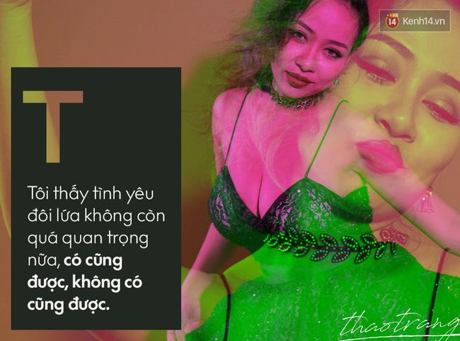 Nhìn xung quanh cũng có rất nhiều cuộc hôn nhân tan vỡ, đó cũng là lí do vì sao cô không đặt nhiều niềm tin vào điều này. Với tính cách và tư duy sống khác biệt, Thảo Trang tự thấy mình rất khó để có thể sống với bất cứ một người đàn ông nào được đường dài.