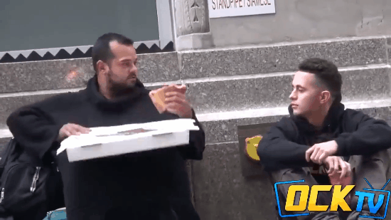 Một chàng trai trong bộ dạng đói lả, đến xin người đàn ông vô gia cư một miếng bánh cùng những lời than vãn về cuộc sống. Thật bất ngờ, dù không có cuộc sống đầy đủ, phải sống trong cảnh bần cùng nhưng người đàn ông không ngại ngần chia sẻ thức ăn với một người không hề quen biết. Dường như những người nghèo đói, sống bần cùng thì họ hiểu như thế nào là cái giá của sự sẻ chia, biết ơn và giúp đỡ lẫn nhau của những người đồng cảnh ngộ.