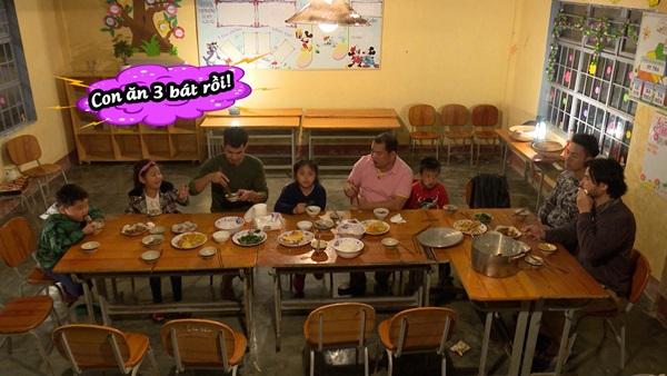 Bữa ăn tối của 4 cặp bố con dường như ngon hơn sau một ngày làm việc cật lực.