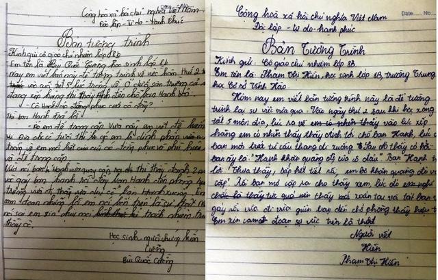 Nghe thấy con mình nói bị thầy giáo đánh, nên vợ chồng anh Trường đã yêu cầu con phải kể tường tận, thậm chí bắt cháu viết tường trình lại toàn bộ sự việc để xem nguyên nhân vì sao. Theo như tường trình của cháu Hạnh thì vào lúc 11h30’ sáng ngày 27/2, khi trống trường điểm hết tiết 5, tan trường do áo đồng phục bị bẩn vì lúc lên bảng chép đề bài, nên khi vừa tan học thì cháu Hạnh bỏ áo đồng phục, khăn quàng đỏ và phù hiệu bỏ vào trong cặp rồi đi về.